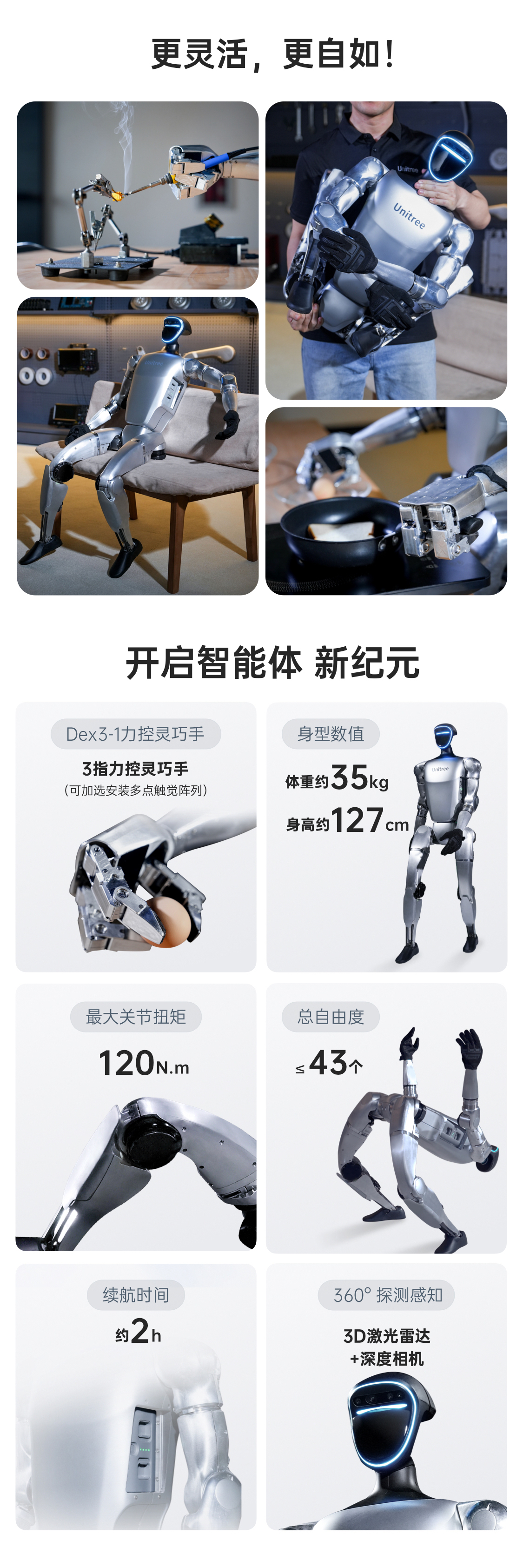 宇樹發布 | Unitree G1 人形智能體 ¥9.9萬元起